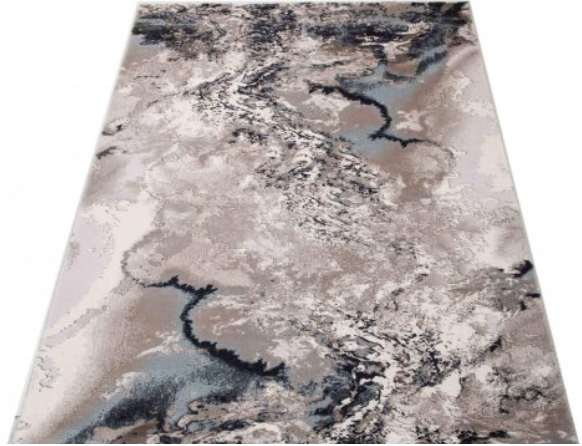 שטיח בסגנון גיאומטרי משולשים אפור עם נגיעות של תכלת.
